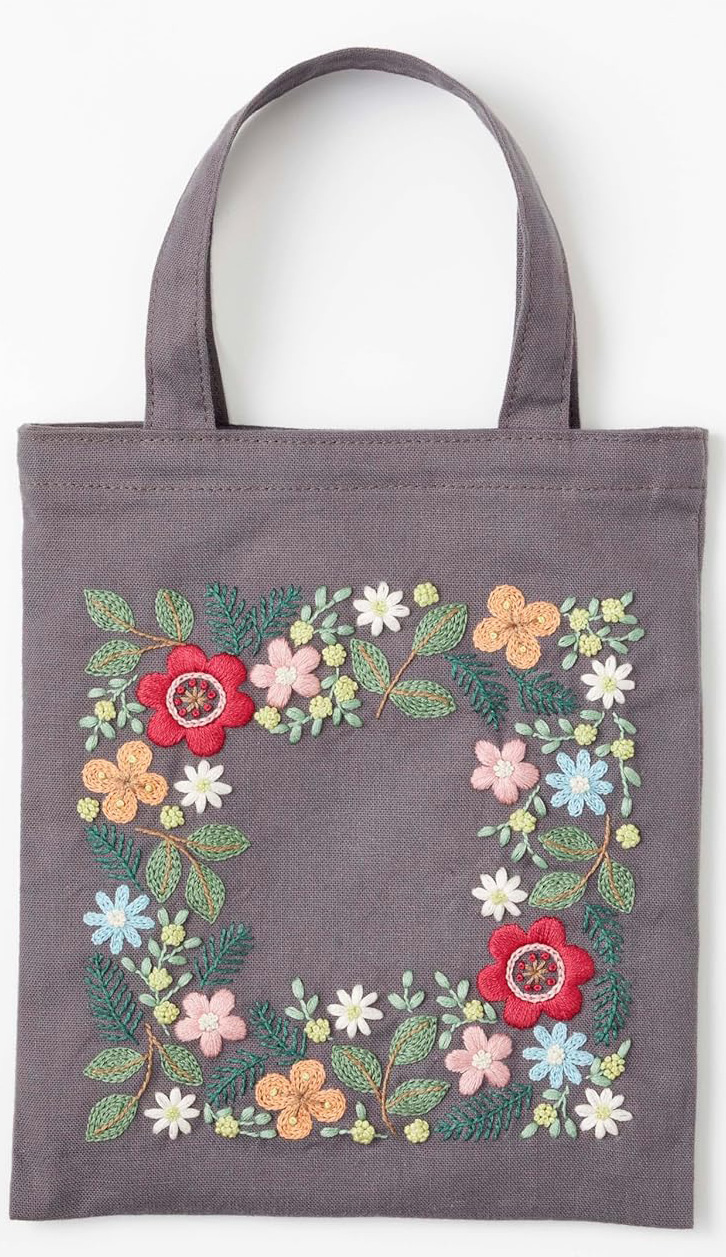 【使用布】コスモ コットンクロス Col. 83 プラムグレー 【出来上りサイズ(持ち手含まず)】 縦 約21 x 横 約19cm 【技法】フリーステッチ 【難易度】初級〜中級 【制作時間目安】10時間以上 | |