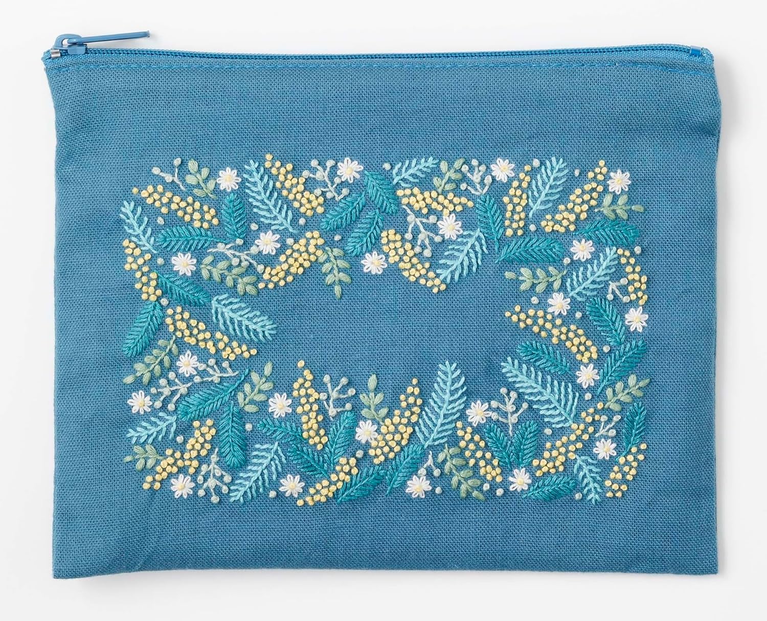 【使用布】コスモ コットンクロス Col. 90 ビンテージブルー 【出来上りサイズ(金具含まず)】 縦 約14.5 x 横 約19cm 【技法】フリーステッチ 【難易度】初級〜中級 【制作時間目安】10時間以上 | |