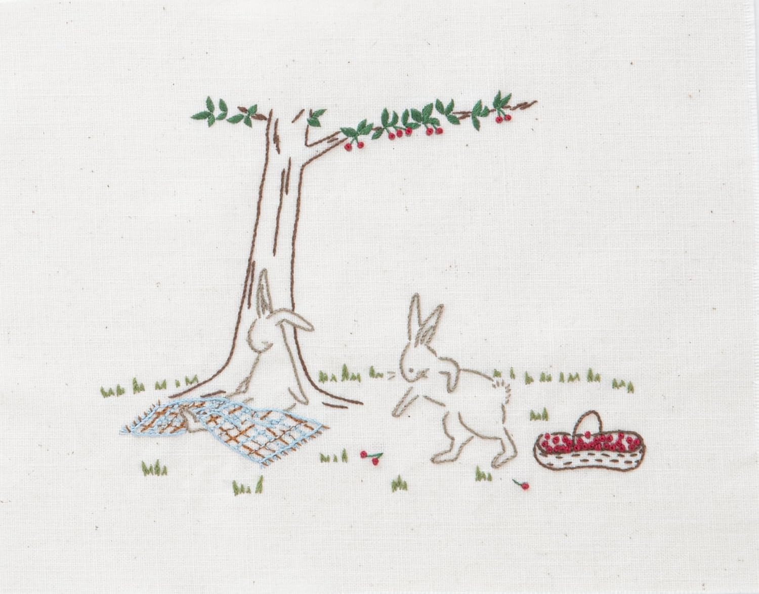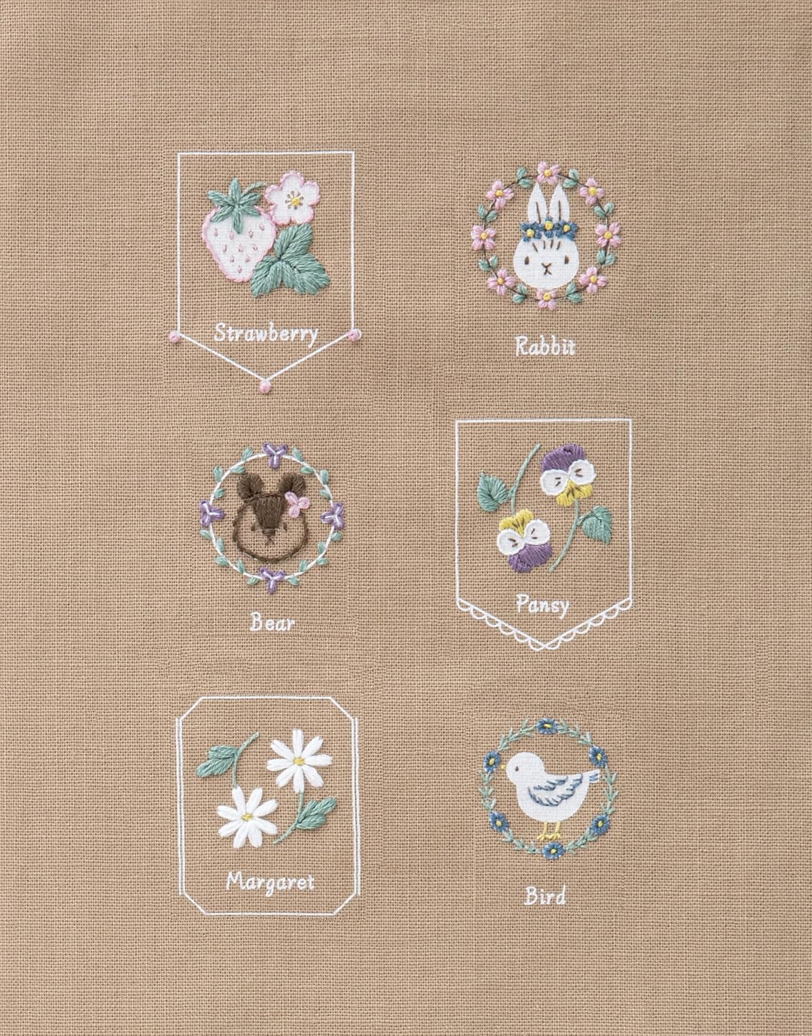 キットには、刺繍糸・布(図案プリント済み)・作り方説明書 が含まれます。