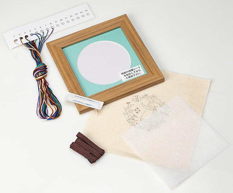 【キット内容】刺繍糸・図案プリント済み刺繍布・接着芯・針・フレーム・説明書 ⇒内容物の見本 【使用布】コスモ コットンクロス Col. 35 アイボリー 【出来上りサイズ】 縦 15.3 x 横 15.3cm(フレーム外寸) 【技法】フリーステッチ 【難易度】初級 【制作時間目安】5〜9時間 | |