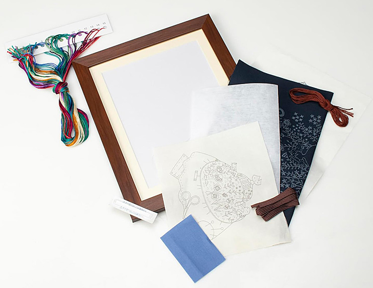 【キット内容】刺繍糸・図案プリント済み刺繍布・接着芯・針・フレーム・説明書 ⇒内容物の見本 【使用布】コスモ コットンクロス Col. 4 ネイビー 【出来上りサイズ】 縦 27.3 x 横 22.4cm(フレーム外寸) 【技法】フリーステッチ 【難易度】上級 【制作時間目安】10時間以上 | |