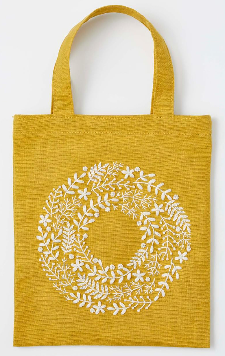 【使用布】コスモ コットンクロス Col. 71 マスタード 【出来上りサイズ(持ち手含まず)】 縦 約21 x 横 約19cm 【技法】フリーステッチ 【難易度】初級〜中級 【制作時間目安】10時間以上 | |